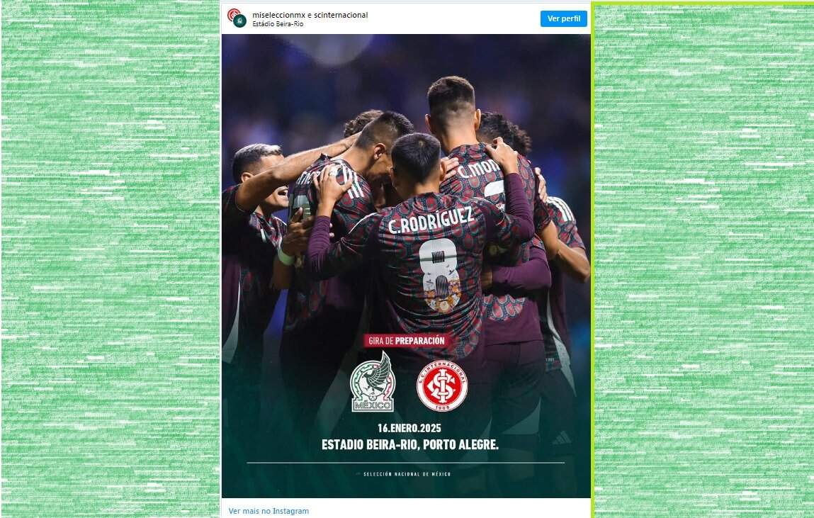 A seleção do México e o Inter divulgaram, na noite desta segunda-feira (30), que vão realizar um amistoso no dia 16 de janeiro, no Beira Rio, em Porto Alegre. O jogo é tido pela seleção mexicana como uma preparação para a Copa do Mundo de 2026, e o clube brasileiro vai ser o primeiro rival dos mexicanos em um giro pela América do Sul.