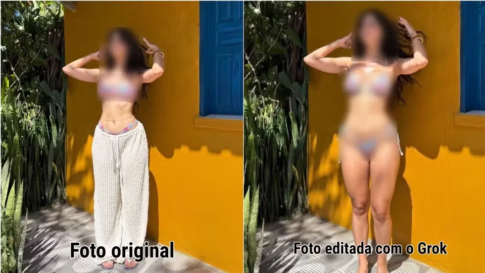 A brasileira é mais uma vítima de usuários do antigo Twitter que pegam fotos que anônimos (e também famosos) postam nas redes e mandam para o Grok, inteligência artificial da plataforma de Elon Musk, alterar as imagens para exibir nudez ou pouca roupa.