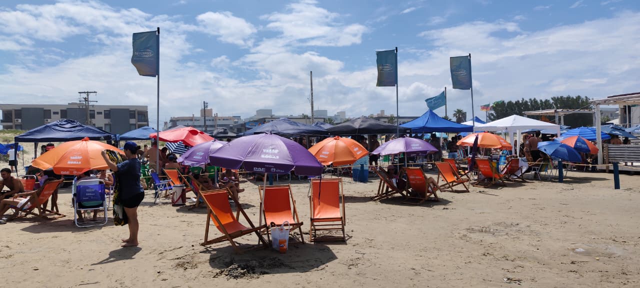 Além da estrutura fixa da Casa de Verão, os veranistas que circulam pela beira da praia também contam com um espaço exclusivo: ao lado do Espaço Pampa de Beach Tennis, o SETCERGS disponibiliza cadeiras e guarda-sóis diretamente na areia, ampliando a experiência de lazer e oferecendo praticidade para quem deseja aproveitar o dia sem preocupações.