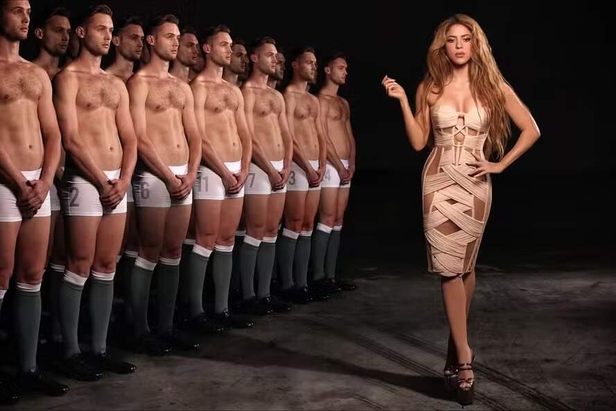 “Deem uma olhada nisso…”, escreveu Shakira na legenda da publicação, sem dar maiores detalhes sobre o contexto do ensaio. Nas imagens, ela aparece cercada por homens de cueca e, em uma das fotos mais comentadas, surge “tatuando” o bumbum de um dos modelos, que está deitado enquanto outros observam.