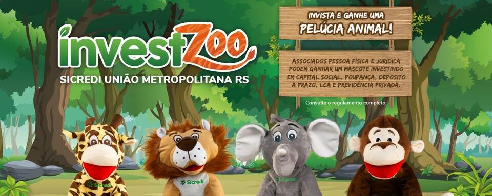 A Sicredi União Metropolitana RS iniciou nesta semana a Campanha InvestZoo, que tem como objetivo despertar a educação financeira nas famílias. Para tratar o tema de uma forma lúdica, a cooperativa desenvolveu animais de pelúcia colecionáveis.