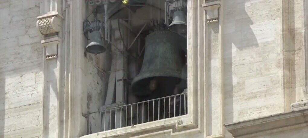 Os sinos da Basílica de São Pedro tocam por volta das 13h10min desta quinta-feira (8) para dar as boas-vindas ao novo papa eleito, que deve ser anunciado a qualquer momento.
