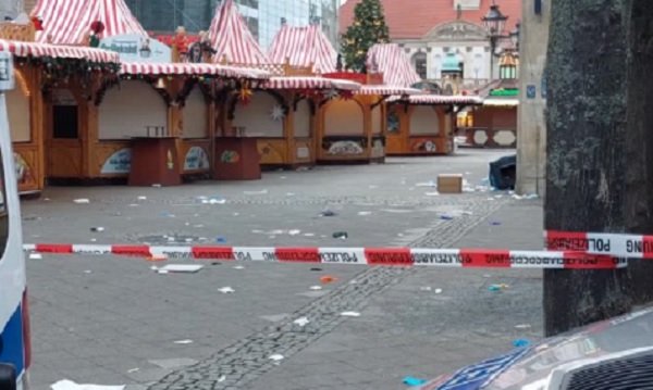 Um vídeo de vigilância do ataque mostrou um BMW preto dirigindo em alta velocidade no meio de uma multidão, atropelando e espalhando corpos entre as barracas que vendiam lanches, artesanatos e o tradicional vinho quente. A polícia disse que o veículo percorreu “pelo menos 400 metros pelo mercado de Natal”, deixando para trás destruição, destroços e vidros quebrados na praça central da prefeitura da cidade.
