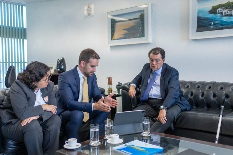 O governador do Rio Grande do Sul, Eduardo Leite, e a secretária estadual da Fazenda, Pricilla Santana, se reuniram com o relator da reforma tributária no Senado, Eduardo Braga, para apresentar os posicionamentos do governo em relação ao texto que tramita na Casa. No encontro, Leite ressaltou a necessidade de um entendimento, por parte do Legislativo, a respeito das particularidades da situação fiscal do Estado a fim de evitar que a reforma não contemple as demandas para o desenvolvimento do RS.