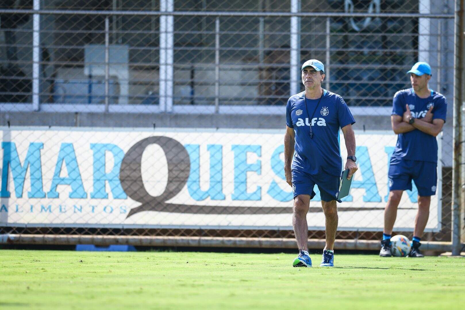 O treinador cumpre suspensão automática no primeiro jogo da decisão do Gauchão, neste sábado (8), na Arena, diante do Inter.