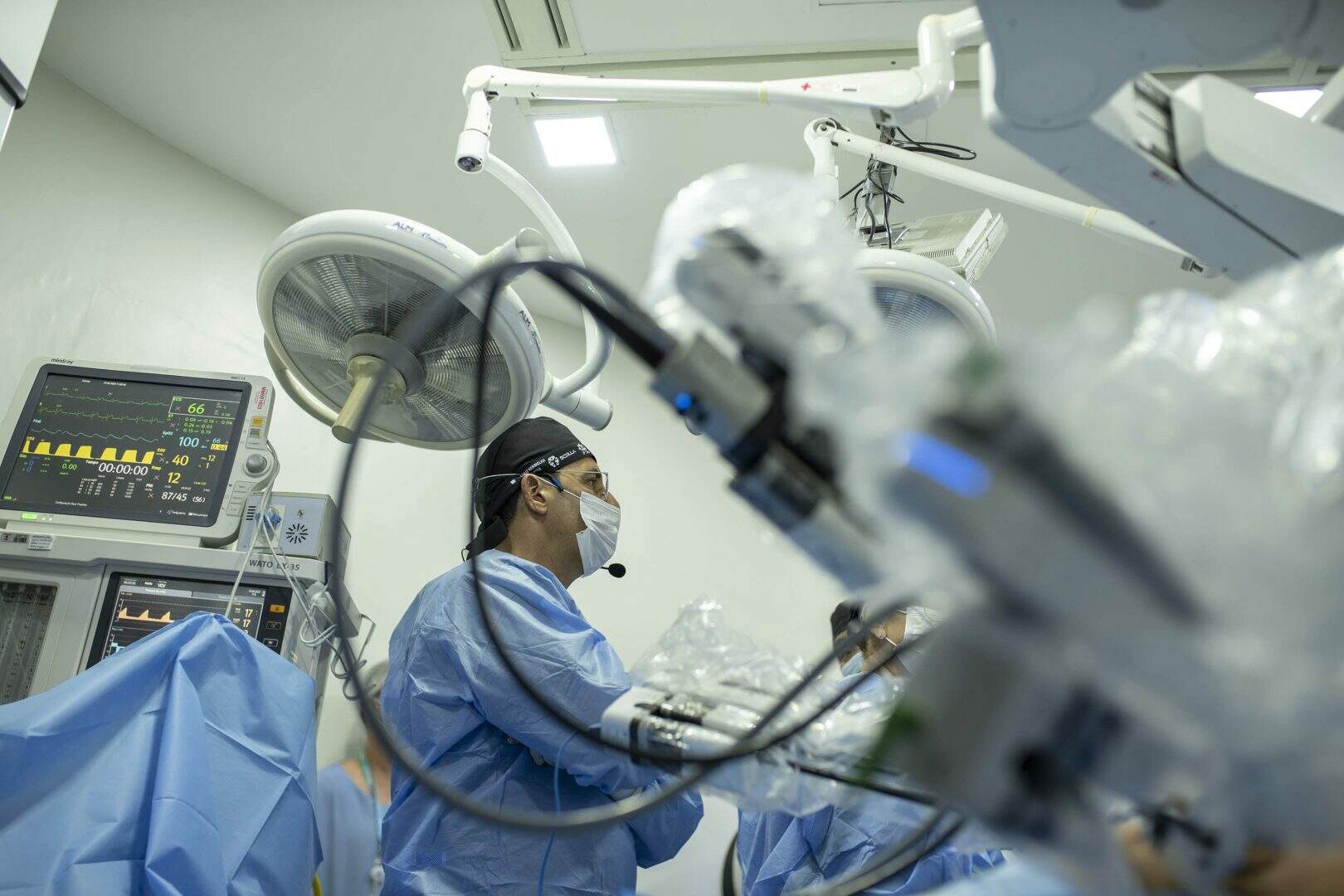 O procedimento mobilizou uma infraestrutura tecnológica de ponta, composta por dois robôs — um no CEONC, equipado com console de comando, e outro na Scolla, com braços articulados — além de um módulo de telecirurgia para decodificação de sinais. A tecnologia de comunicações envolve fibra óptica, internet móvel 5G, 6G e satélite, garantindo uma transmissão estável.