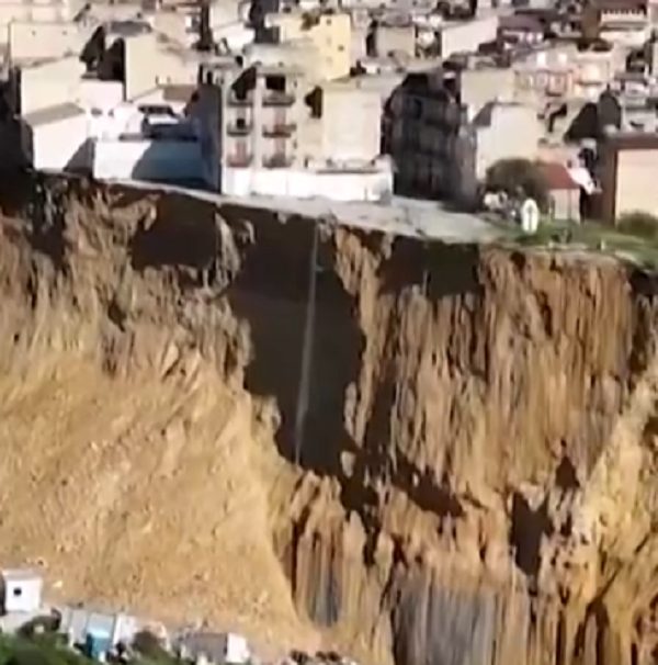 Imagens do local mostram prédios à beira do precipício depois que grandes trechos da encosta desmoronaram.