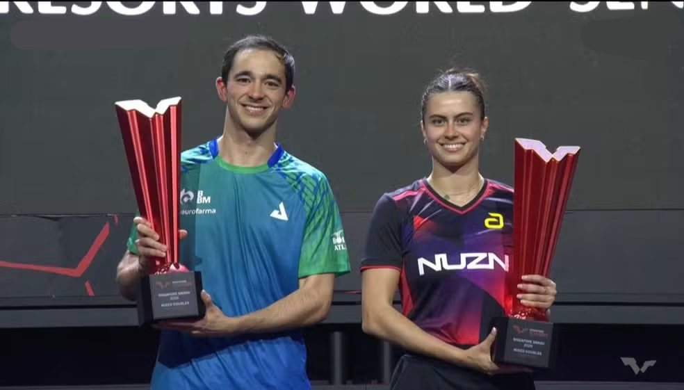 Bruna Takahashi e Hugo Calderano conquistaram o título de duplas mistas no Smash de Tênis de Mesa em Singapura e fizeram história no cenário internacional da modalidade. Os brasileiros já haviam alcançado um feito inédito ao se tornarem os primeiros atletas não-asiáticos a avançar para a final do torneio, mas, nessa sexta-feira (27), foram além: tornaram-se a primeira dupla não-chinesa a vencer a competição. Na decisão, derrotaram os sul-coreanos Lim Jonghoon e Shin Yubin, atuais líderes do ranking mundial da categoria, por 3 sets a 0, levantando o troféu de uma das mais importantes competições do Circuito Mundial de tênis de mesa.