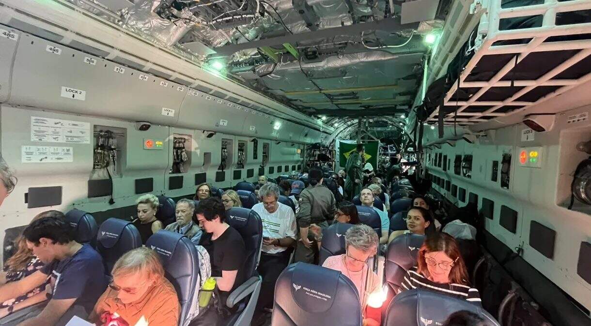 O terceiro voo que traz brasileiros repatriados decolou de Israel no fim da manhã desta quinta-feira (12), pouco antes das 12h (horário de Brasília). A aeronave é um KC-390 Millennium e traz a bordo 69 brasileiros que pediram para deixar a zona de conflito no Oriente Médio.