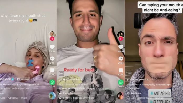 O TikTok é uma fonte de tendências. Algumas são positivas, outras, nem tanto. Na segunda situação se inclui o truque de prender os lábios com fita adesiva para dormir. A ideia começou a circular nas redes no início do ano, mas não para de ganhar adeptos. A hashtag #mouthtape, que em tradução livre significa “fita na boca” conta com mais de 40 milhões de visualizações e há outros desdobramentos dela como a #mouthtapesleeping (“fita na boca para dormir) com mais de 1 milhão de visualizações, entre outras.