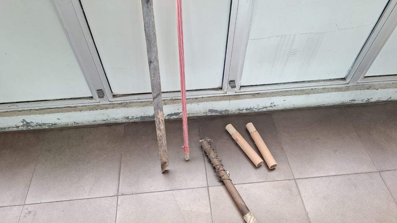Um dos indivíduos foi abordado no local com objetos, pedaços de madeira e fogos de artifício, usados para causar os danos, enquanto os demais fugiram, sendo posteriormente detidos em uma via próxima.