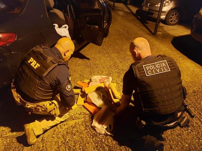 Na noite desta quinta-feira (25), uma ação conjunta entre Polícia Rodoviária Federal e Polícia Civil apreendeu 14 quilos de maconha em Pelotas, no Sul do Estado. Dois traficantes foram presos transportando a droga no interior de um automóvel.
