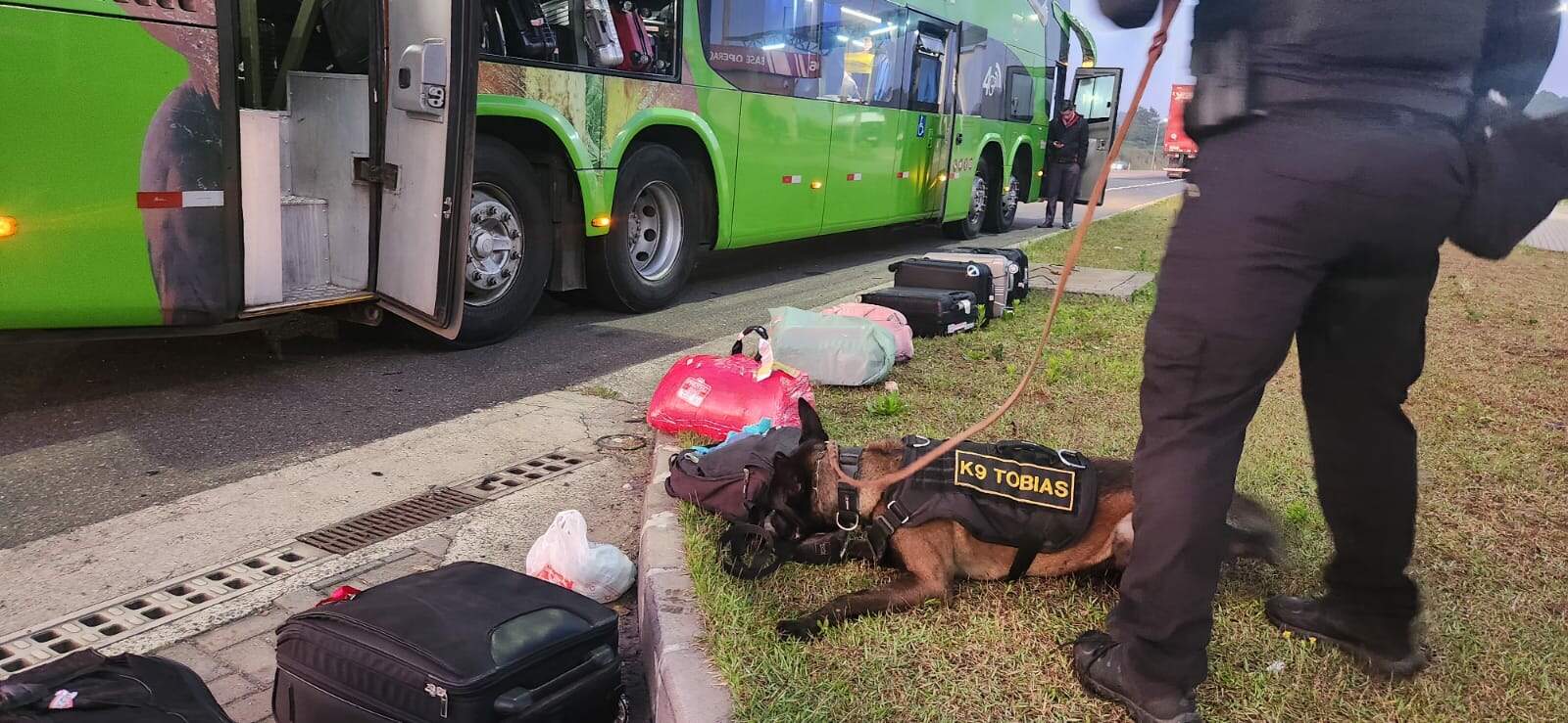 Os três eram passageiros de um ônibus que foi abordado durante a ação. O veículo viajava de Santa Catarina para Porto Alegre. O cão K9 Tobias deu indicação positiva para as bagagens de dois homens.