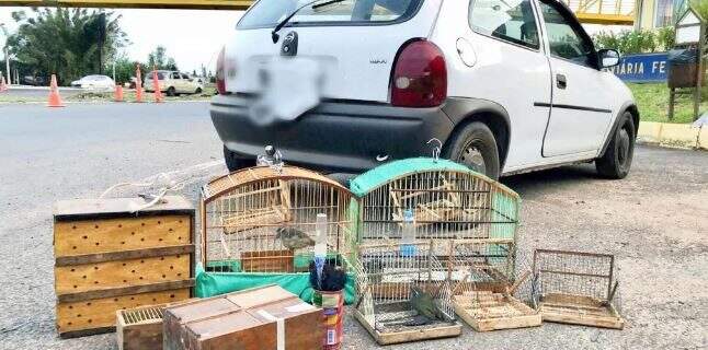 O flagrante ocorreu quando o veículo foi abordado pelo efetivo da PRF. Durante a vistoria, os policiais encontraram duas gaiolas com os passarinhos no porta-malas e banco traseiro.