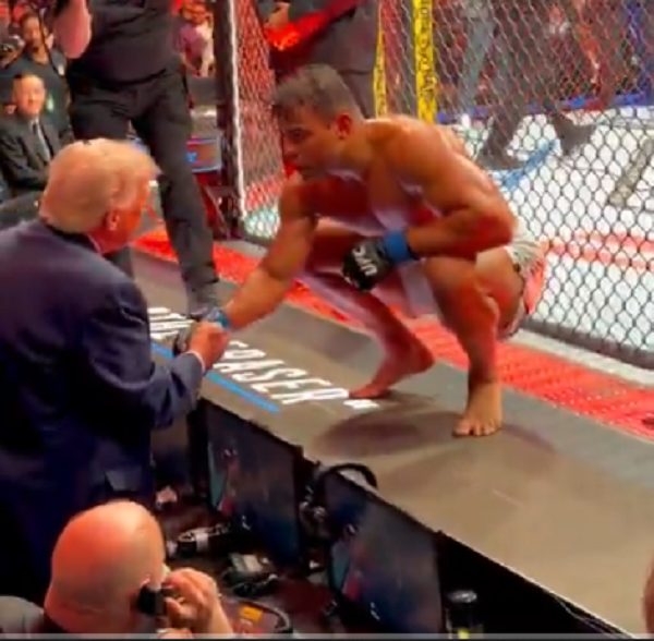 O republicano, que acompanhava o evento da primeira fila no Kaseya Center, aproveitou o encontro na grade do octógono para elogiar a aparência do competidor, afirmando que ele “poderia ser um modelo” e que é “bonito demais para ser um lutador”.