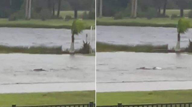Em meio aos rastros de destruição, o animal nadou em uma área alagada pelas ruas da cidade. O norte-americano Armando Salguero postou um vídeo de 10 segundos que mostra um peixe se debatendo na água. Junto ao vídeo, ele escreveu: “Tubarões nadando pelas ruas de Fort Myers”.