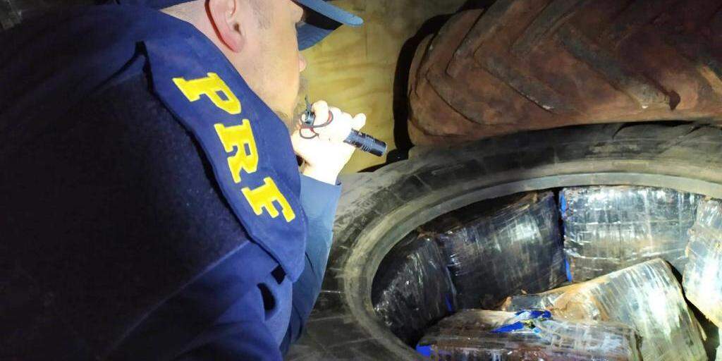 A PRF (Polícia Rodoviária Federal) apreendeu uma tonelada de maconha escondida em uma carga de pneus e prendeu em flagrante um traficante em Torres, no Litoral Norte gaúcho, neste sábado (28).