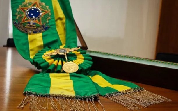 Na presença de um Chefe de Estado, o presidente da República poderá substituir a faixa por uma condecoração do referido Estado, acrescenta.