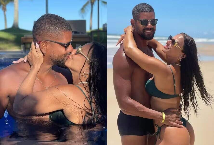 Viviane Araujo, de 48 anos, está aproveitando um período de férias com a família em Itacaré, no sul da Bahia, e compartilhou algumas fotos com o marido, Guilherme Militão, em clima de romance.