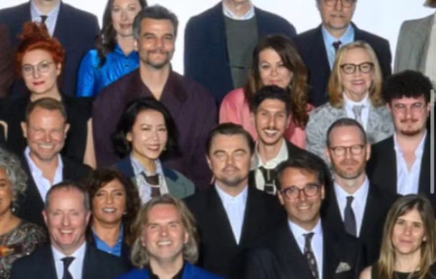 Os brasileiros posaram para uma foto com vários dos principais atores, diretores e produtores nomeados à premiação deste ano. Estão na imagem Guillermo del Toro, cineasta por trás de “Frankenstein”, indicado a melhor filme, Leonardo DiCaprio, que disputa com Moura a estatueta de melhor ator por “Uma Batalha Após a Outra”, e a atriz Emma Stone, que mira o troféu de atriz com “Bugonia”.
