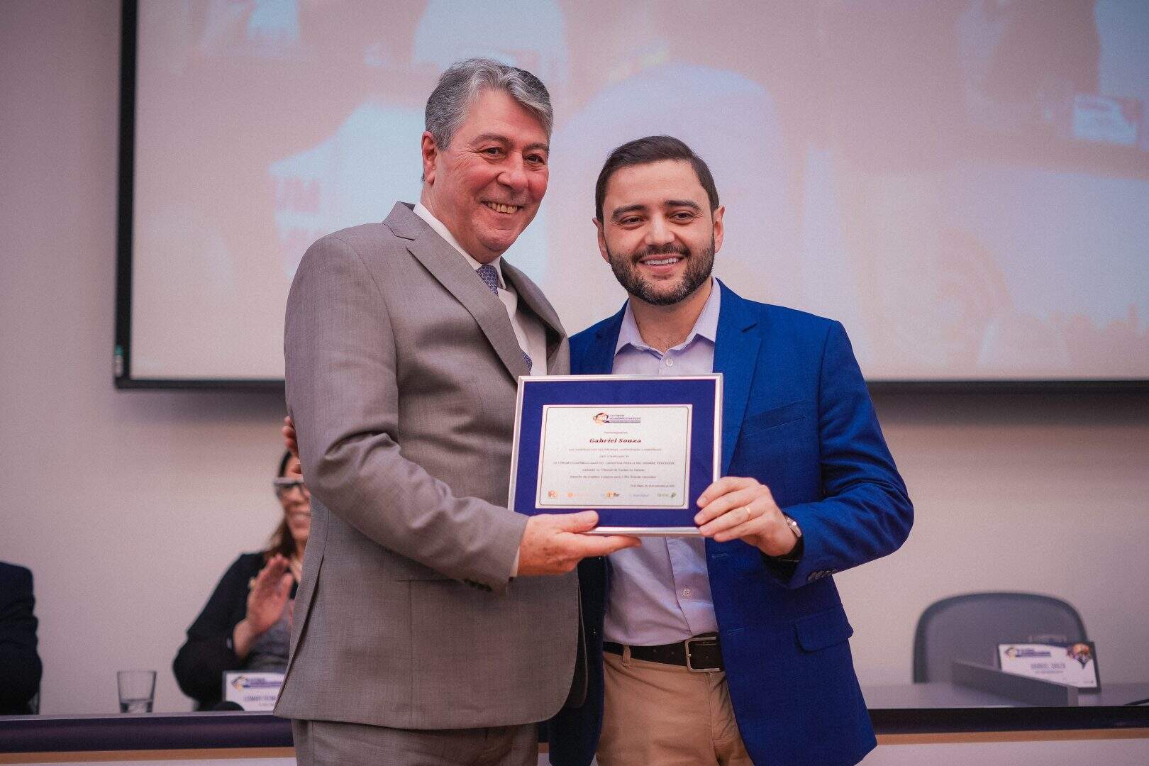 Na abertura do XII Fórum Econômico Gaúcho, realizado nesta quarta-feira (4) no Tribunal de Contas do Estado, o vice-governador Gabriel Souza encerrou sua participação reforçando a defesa do modelo de concessões de rodovias. Ele explicou que o Estado adotou referências aplicadas em São Paulo e em estradas federais, destacando que o programa já permitiu a duplicação de cerca de 400 quilômetros de rodovias gaúchas. Gabriel recebeu uma homenagem entregue pelo presidente do Banrisul, Fernando Lemos.
