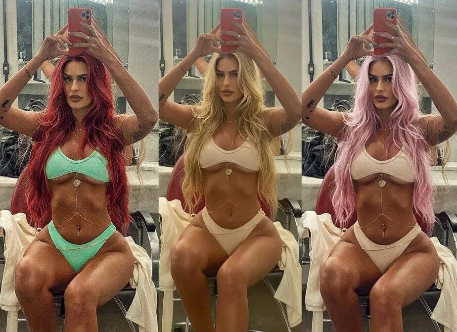 “Quero pintar o cabelo!”, escreveu ela na legenda das fotos editadas, em que aparece com o cabelo em um ruivo mais fechado e também um rosa em tom pastel. Brunet ainda pediu a opinião de seus seguidores, pedindo para que escolhessem entre a opção 1 e a opção 2.