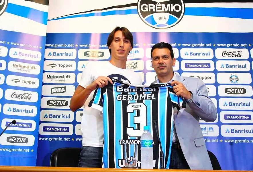 Apresentado três dias mais tarde, ainda na sala de imprensa do estádio Olímpico, Geromel afirmou que daria o seu máximo ao vestir a “camisola” do Grêmio, utilizando uma expressão típica do português de Portugal, onde jogou parte de sua carreira.